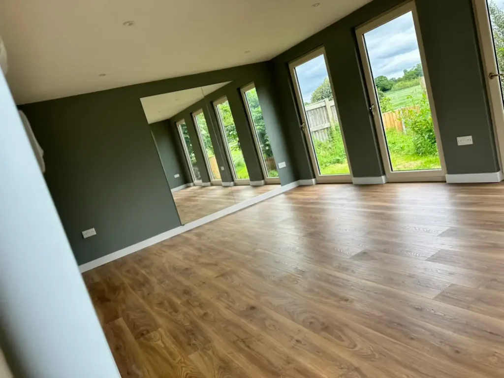 4. Finishing Touches: Completed the interior with plastered walls, a full electrical setup, water-resistant flooring, and underfloor heating. Added gym mirrors to enhance the workout space.
