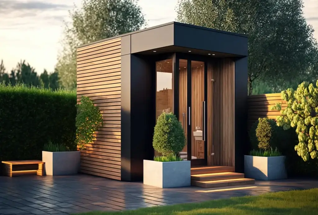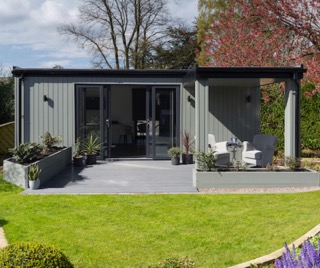 The Conisbrough is a contemporary Garden Room with either a 0.5m or 1 m overhang at the front for added shelter