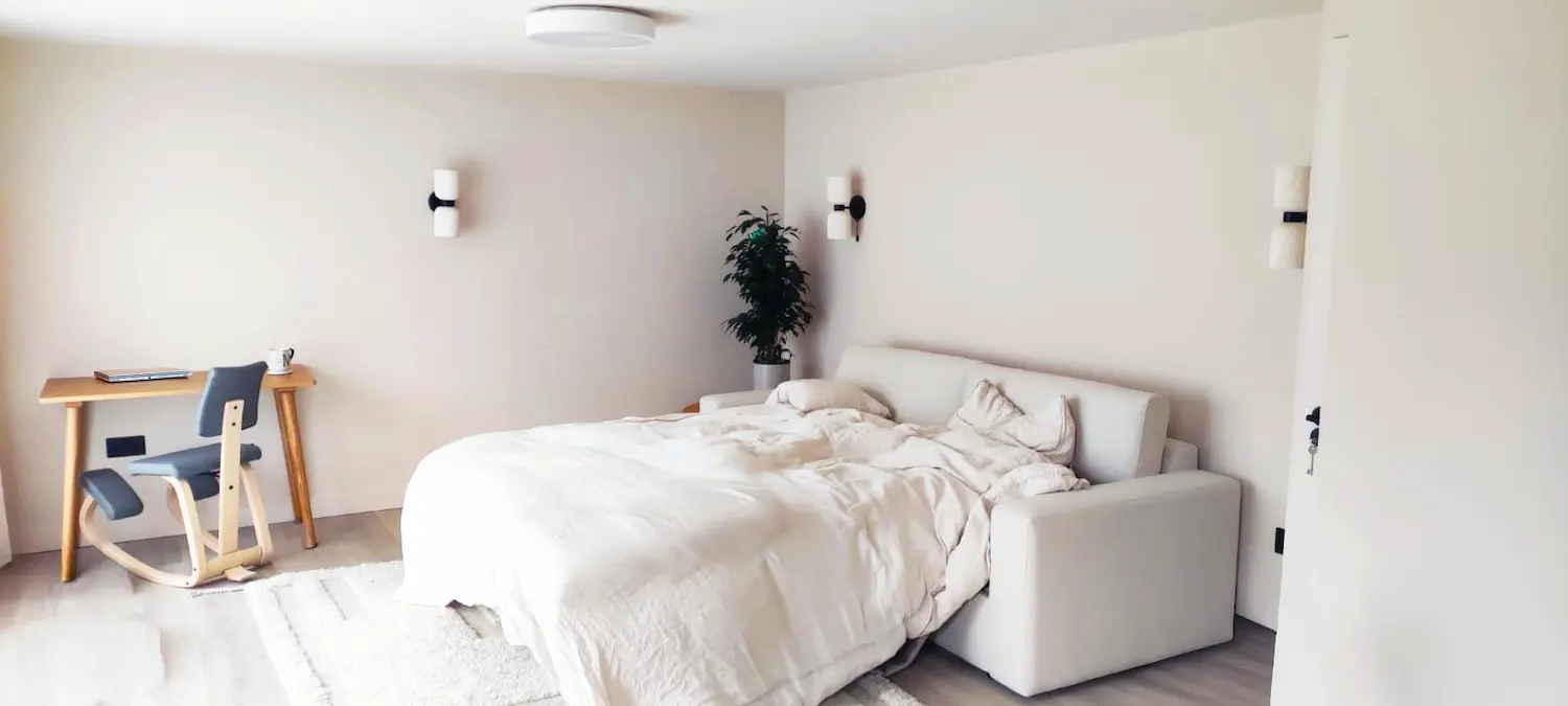 Like all our garden rooms, this Sheffield annexe was built using SIPs (Structural Insulated Panels) for the floor, walls and roof. This ensures outstanding energy performance (U-values as low as 0.18 W/m²K on the roof), which keeps the space comfortable in all seasons and makes it suitable for everyday living.