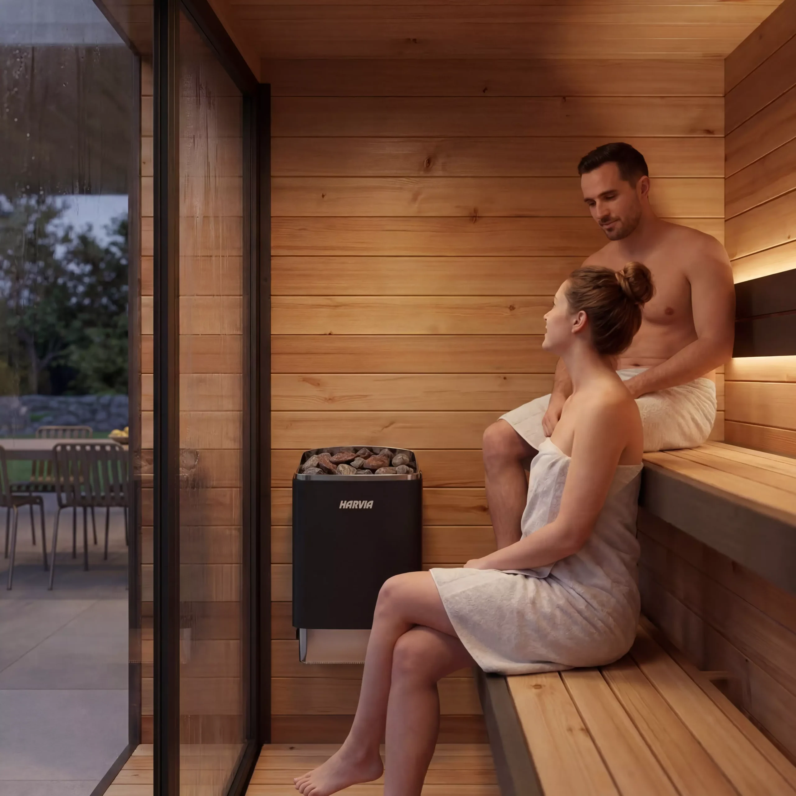 • Efficient electric sauna heater providing fast heat-up and consistent sauna temperatures;