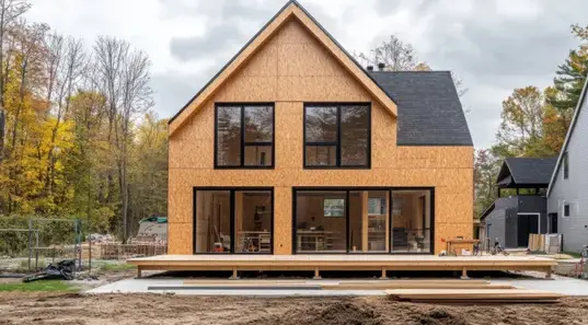 Each Heritage Living structure begins with a SIP shell — two engineered OSB layers bonded to a high-performance insulated core. This “fabric-first” approach integrates structure and insulation from the start, reducing thermal bridging and achieving U-values as low as 0.12 W/m²K. Buildings stay warmer in winter and cooler in summer, lowering operational energy demand and providing lasting comfort. SIPs also deliver exceptional airtightness and structural integrity, maintaining performance far beyond traditional timber or masonry builds.